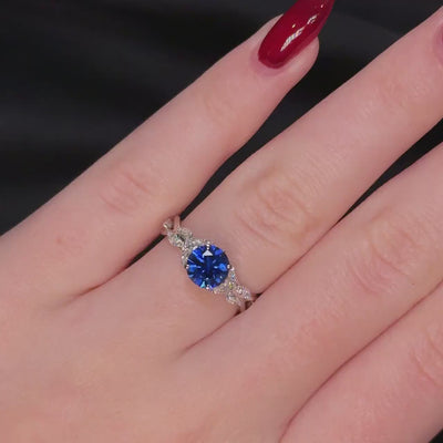 Round Cut Nature Inspired Blue Sapphire Engagement Ring